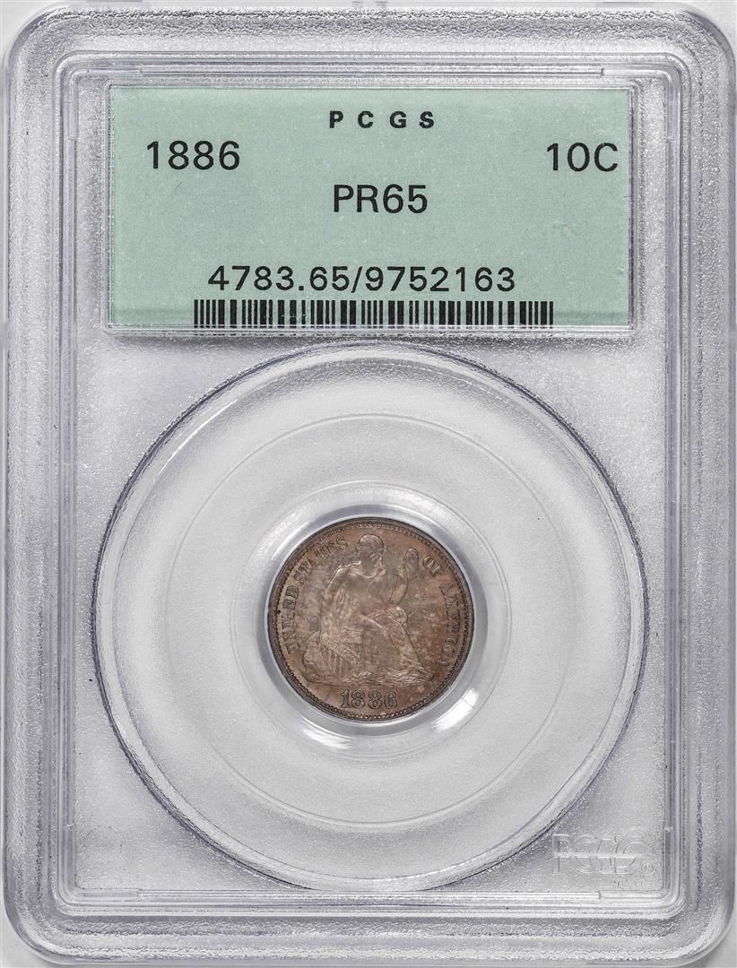 One 1886 Proof Seated Liberty Dime Coin PCGS PR65 Old Green Holder. PCGS Graded.