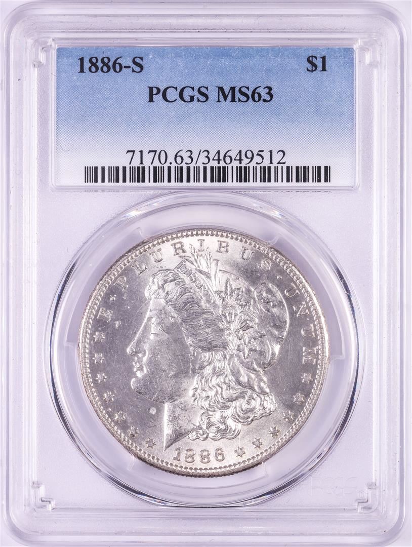 One 1886-S $1 Morgan Silver Dollar Coin PCGS MS63. PCGS Graded.