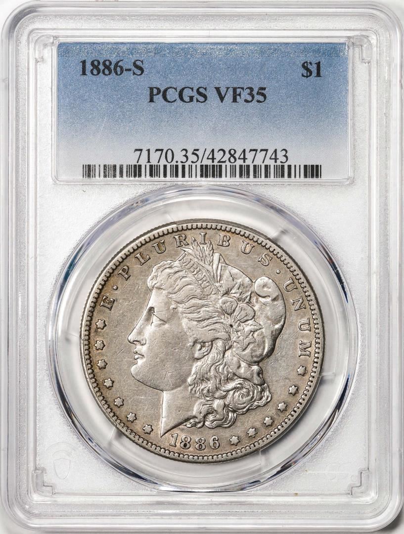 One 1886-S $1 Morgan Silver Dollar Coin PCGS VF35. PCGS Graded.