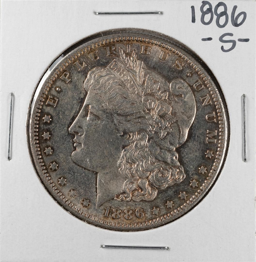 One 1886-S $1 Morgan Silver Dollar Coin.