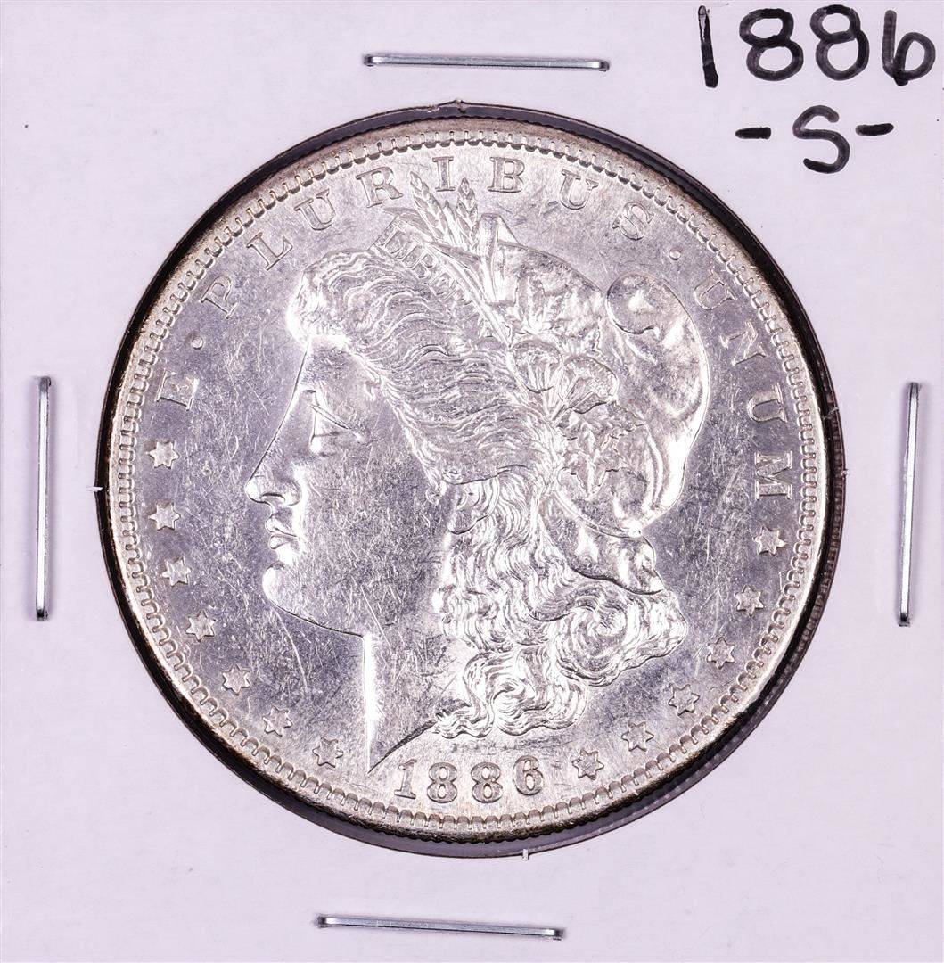 One 1886-S $1 Morgan Silver Dollar Coin.
