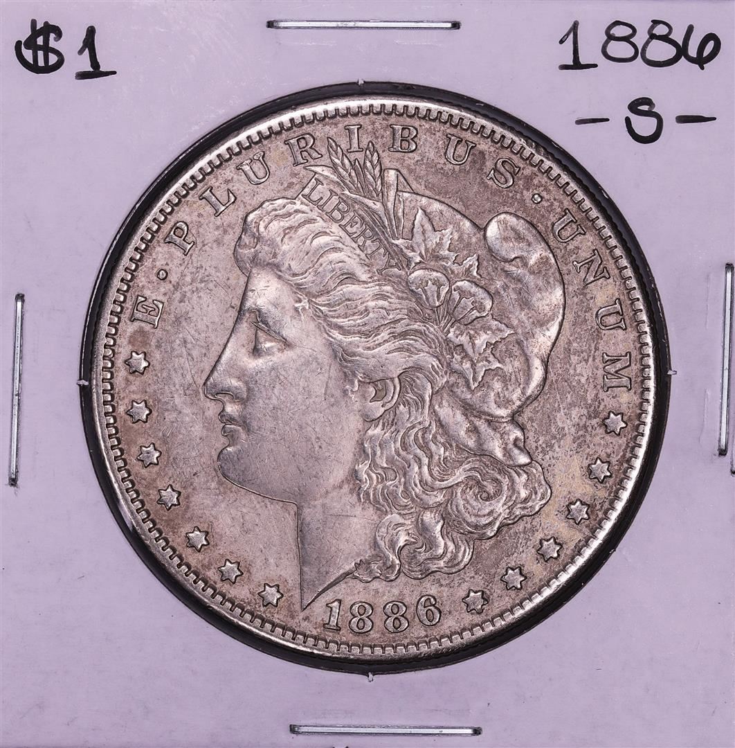 One 1886-S $1 Morgan Silver Dollar Coin.