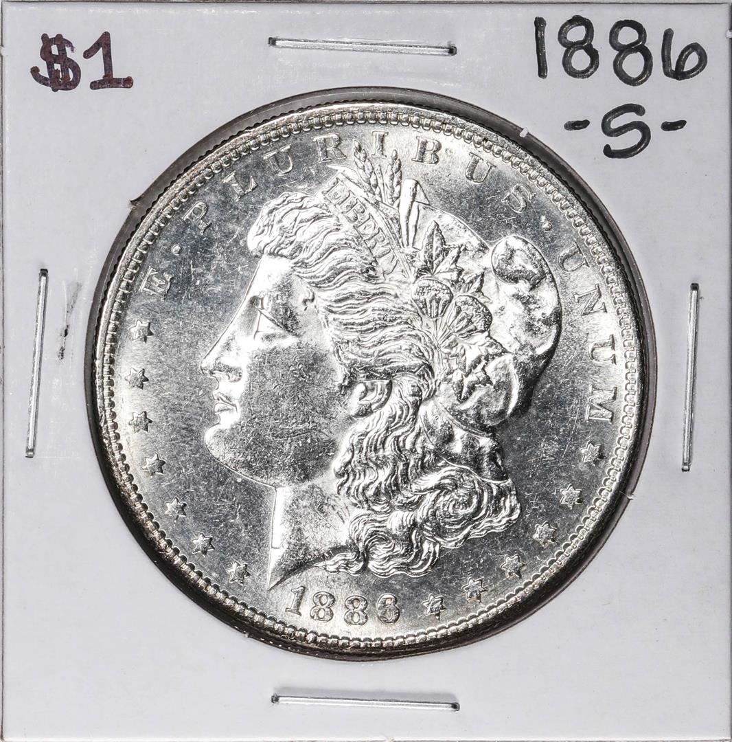 One 1886-S $1 Morgan Silver Dollar Coin.