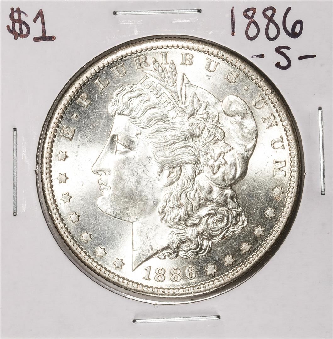 One 1886-S $1 Morgan Silver Dollar Coin.