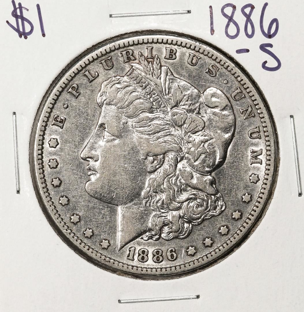 One 1886-S $1 Morgan Silver Dollar Coin.