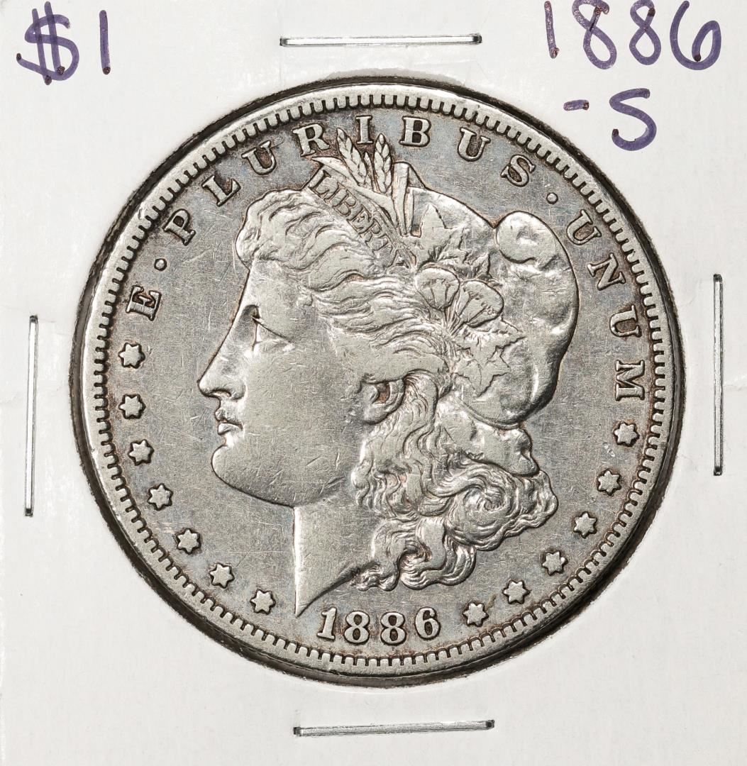 One 1886-S $1 Morgan Silver Dollar Coin.