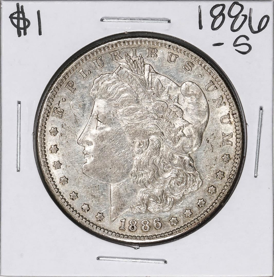 One 1886-S $1 Morgan Silver Dollar Coin.