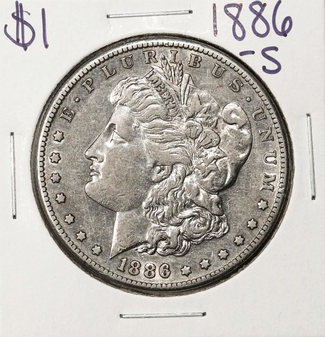 One 1886-S $1 Morgan Silver Dollar Coin.