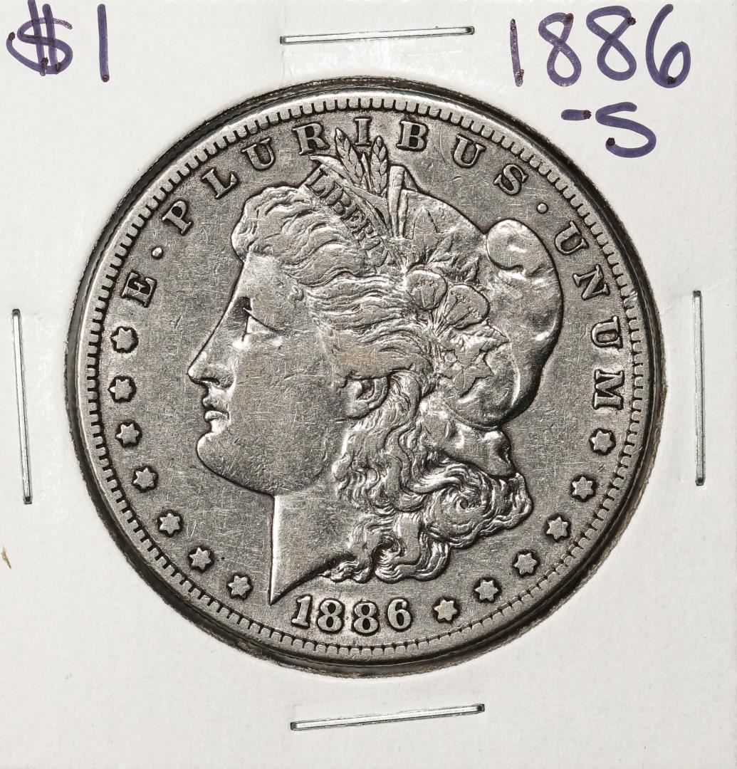 One 1886-S $1 Morgan Silver Dollar Coin.