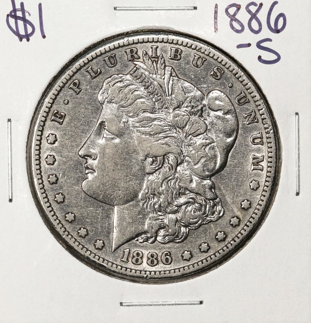 One 1886-S $1 Morgan Silver Dollar Coin.