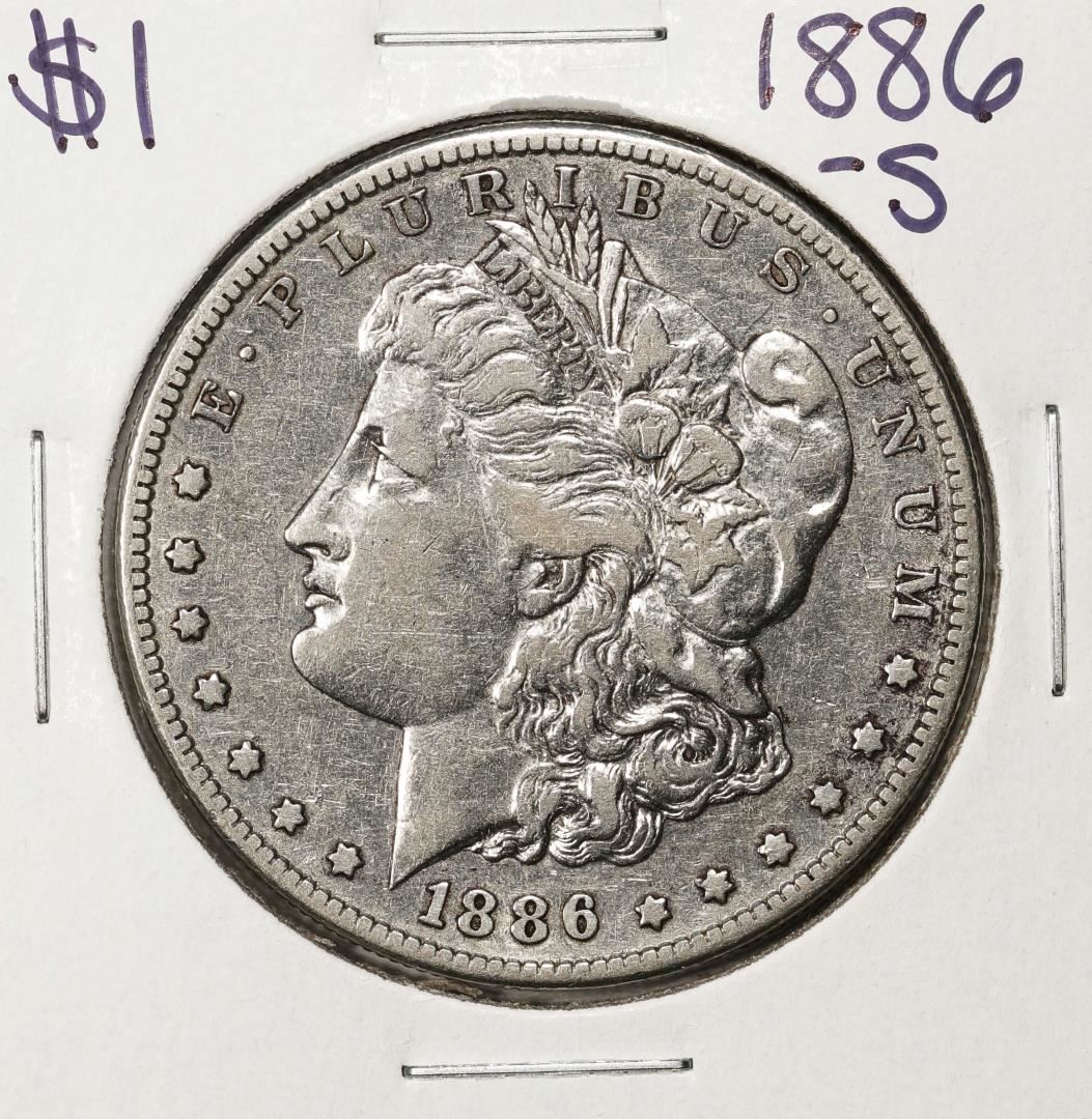 One 1886-S $1 Morgan Silver Dollar Coin.