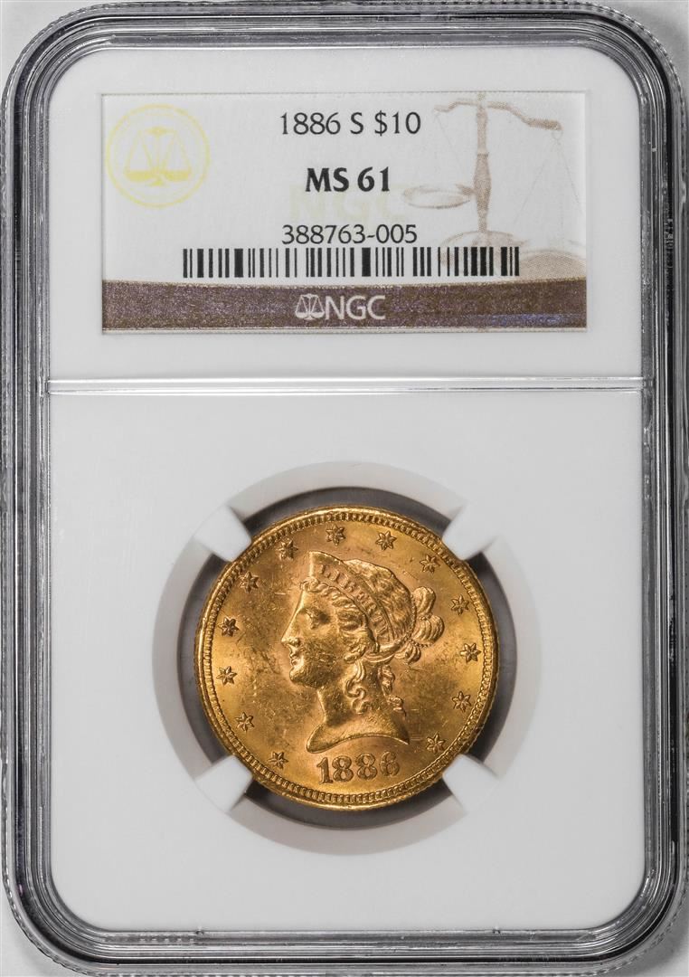 One 1886-S $10 Liberty Head Eagle Gold Coin NGC MS61. NGC Certified.