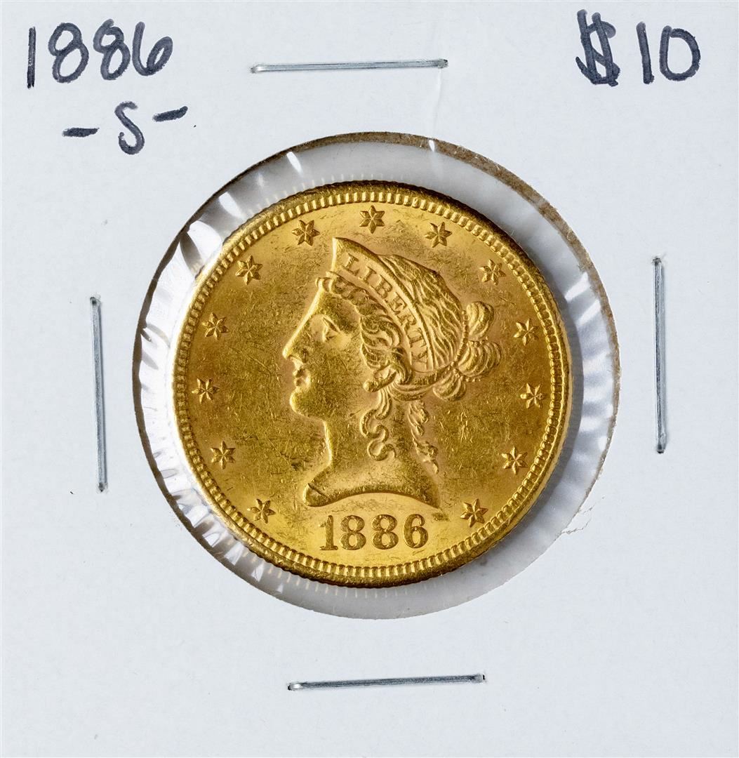 One 1886-S $10 Liberty Head Eagle Gold Coin.