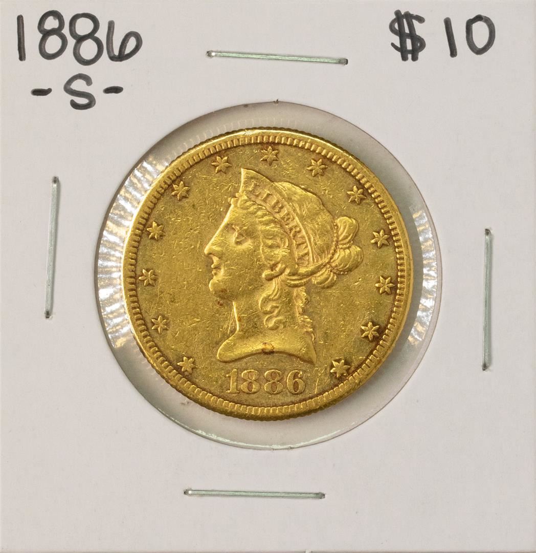One 1886-S $10 Liberty Head Eagle Gold Coin.