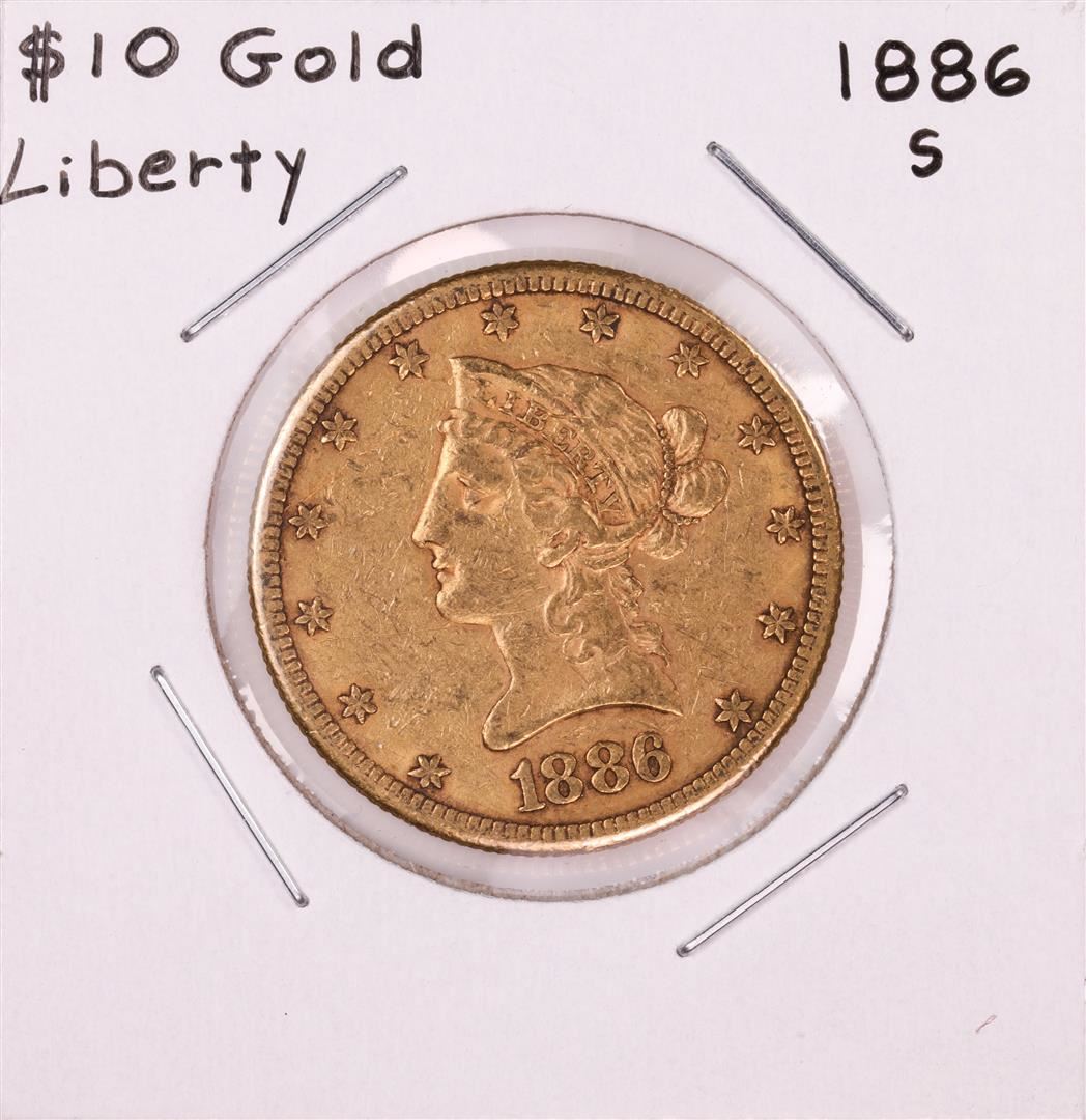 One 1886-S $10 Liberty Head Eagle Gold Coin.