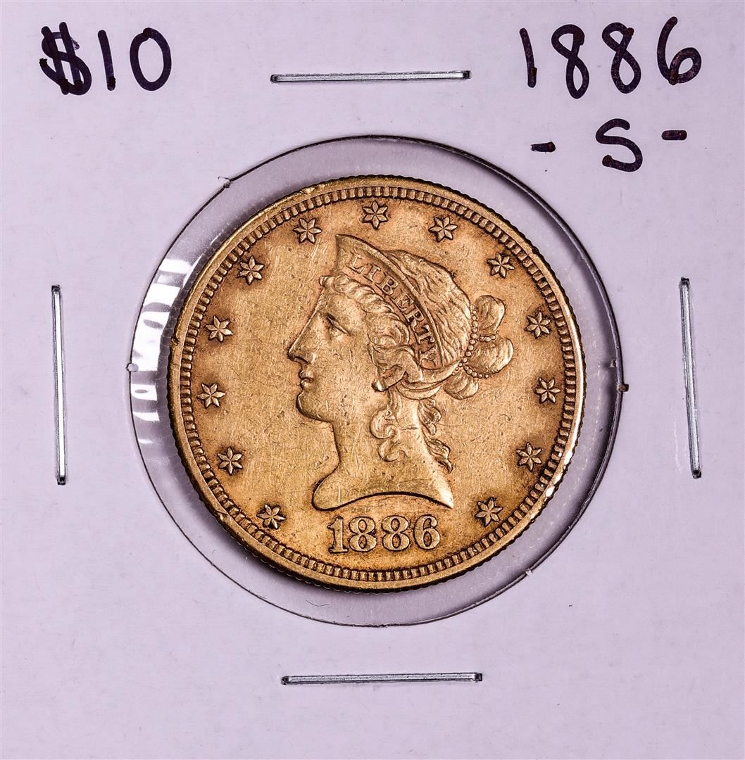 One 1886-S $10 Liberty Head Eagle Gold Coin.