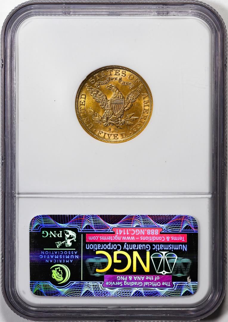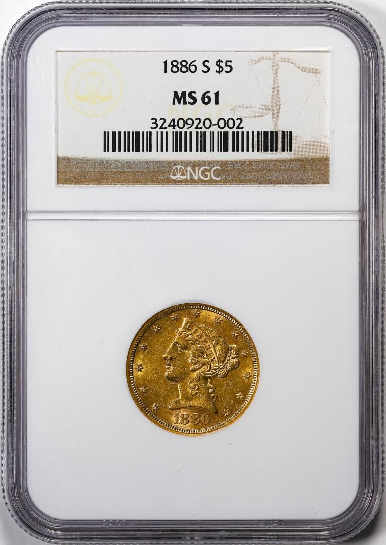 One 1886-S $5 Liberty Head Half Eagle Gold Coin NGC MS61. NGC Certified.