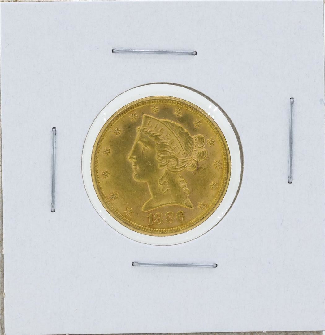 One 1886-S $5 Liberty Head Half Eagle Gold Coin.