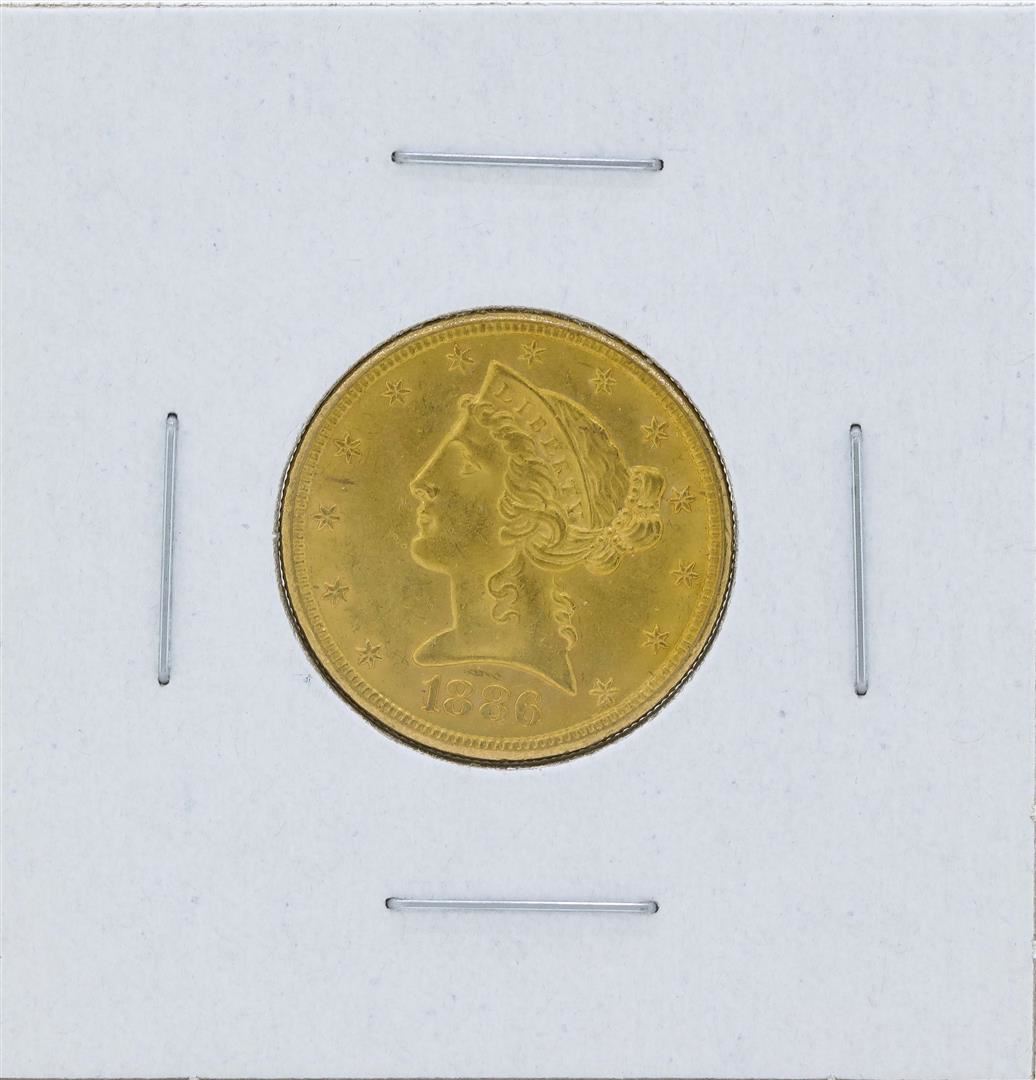 One 1886-S $5 Liberty Head Half Eagle Gold Coin.