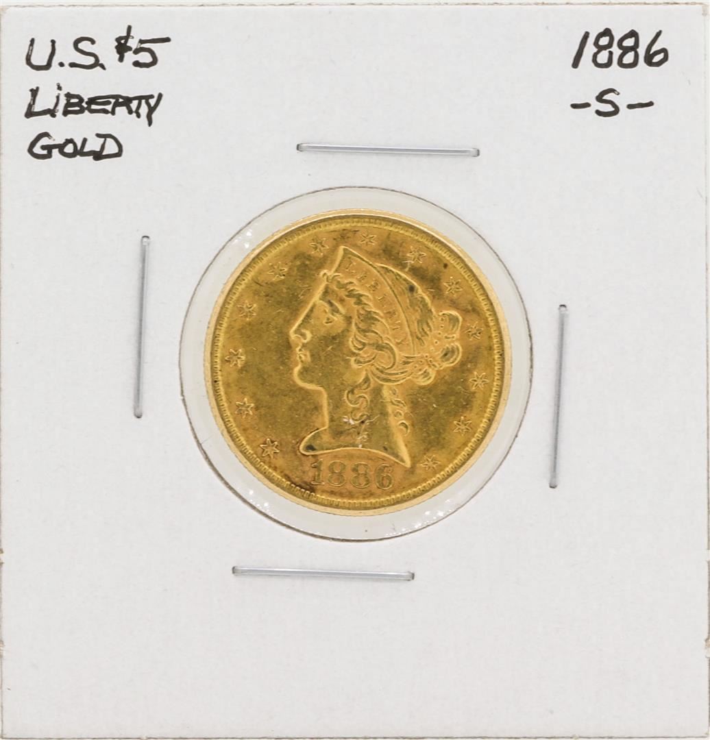 One 1886-S $5 Liberty Head Half Eagle Gold Coin.