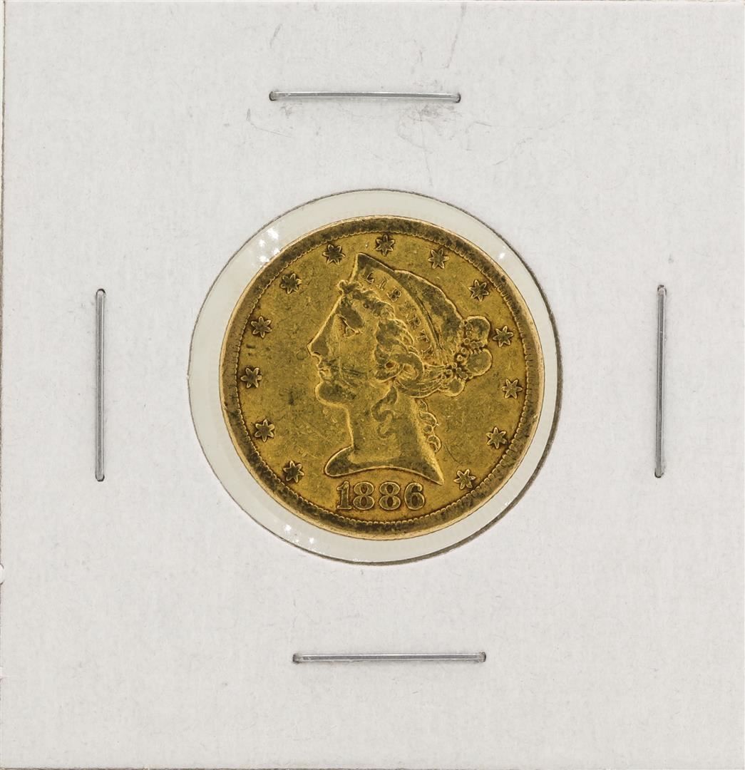 One 1886-S $5 Liberty Head Half Eagle Gold Coin.