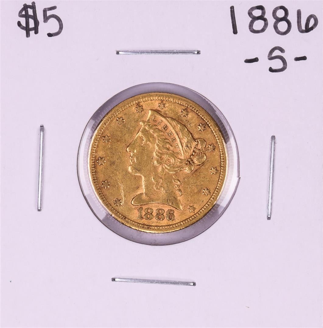 One 1886-S $5 Liberty Head Half Eagle Gold Coin>