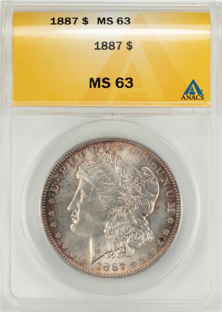 One 1887 $1 Morgan Silver Dollar Coin ANACS MS63. ANACS Certified.