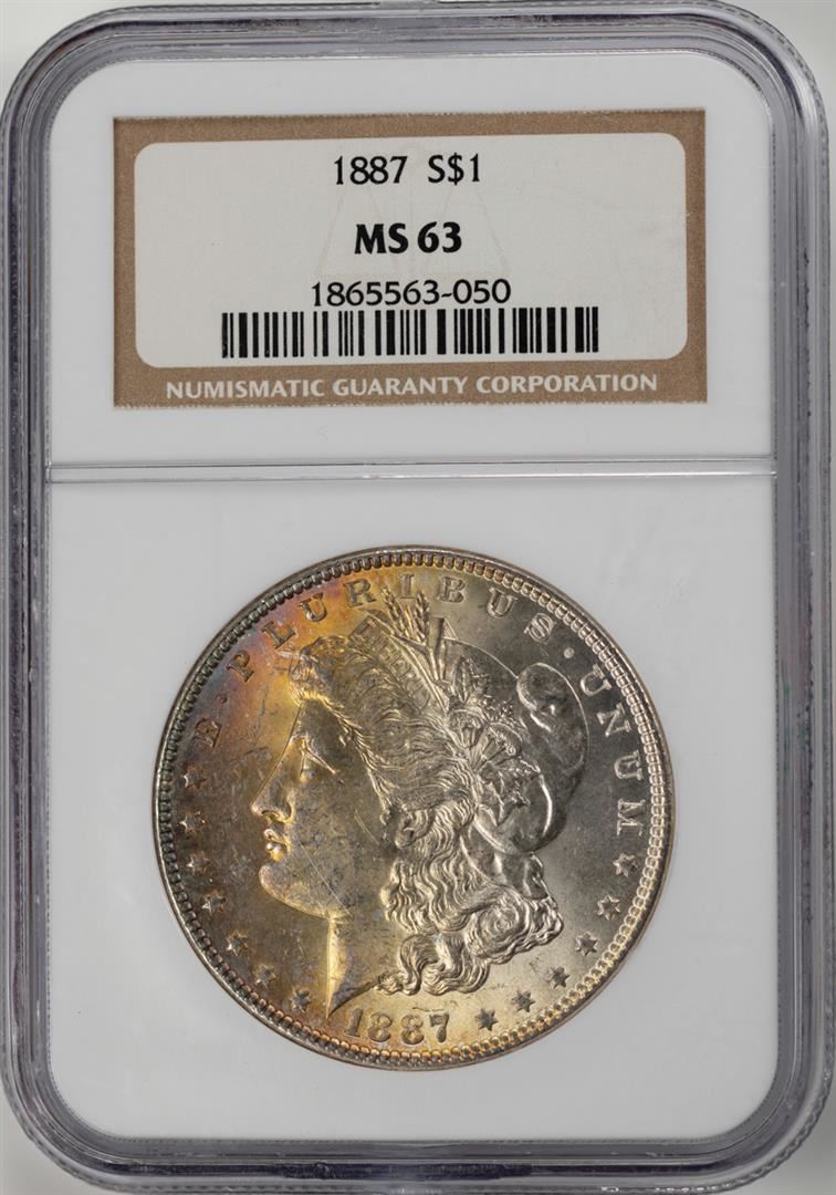 1887 $1 Morgan Silver Dollar Coin NGC MS63 Amazing Toning