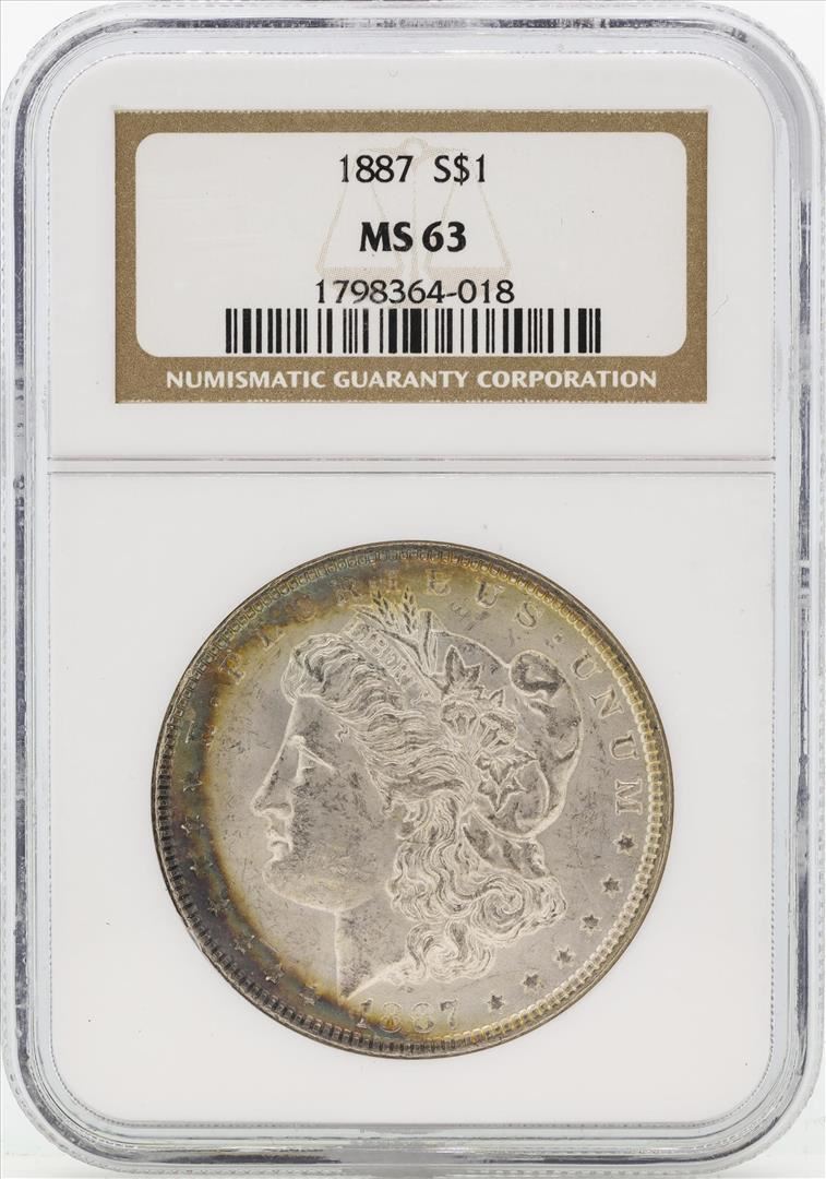 One 1887 $1 Morgan Silver Dollar Coin NGC MS63 Great Toning. NGC Certified.