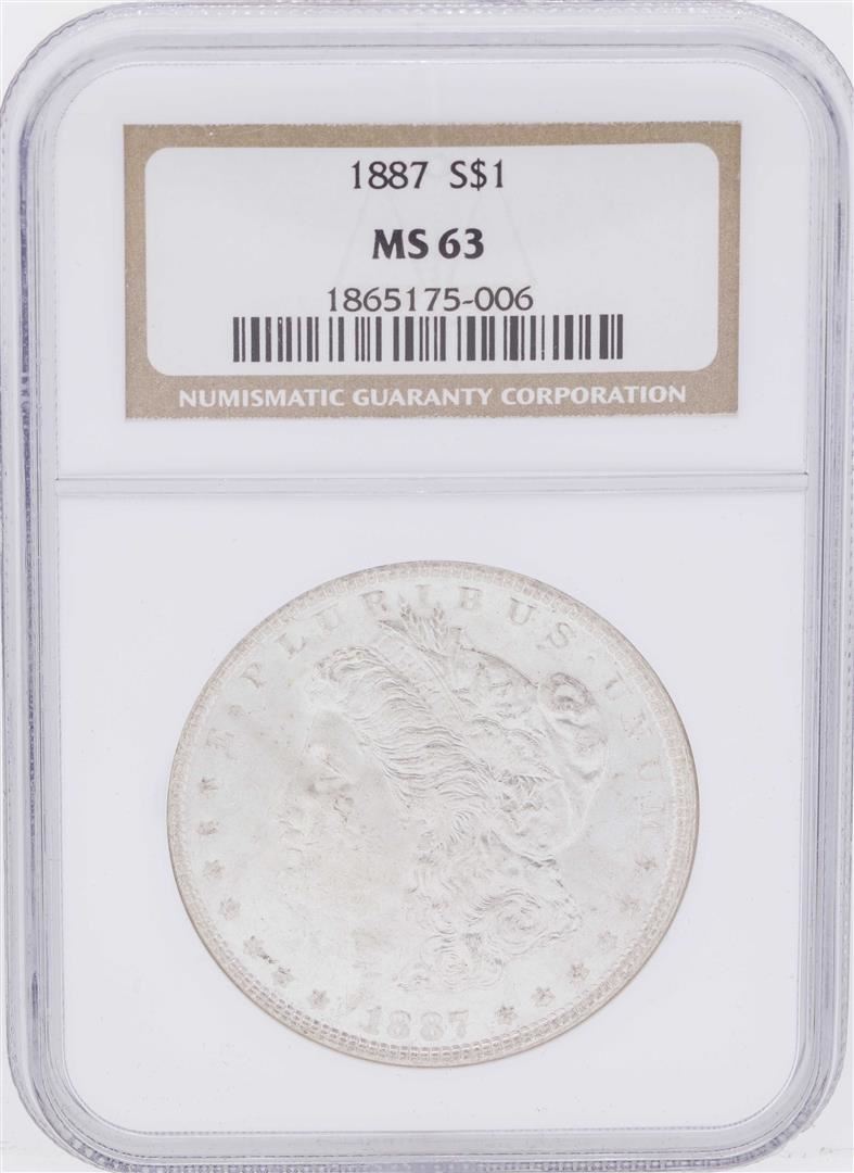 1887 $1 Morgan Silver Dollar Coin NGC MS63