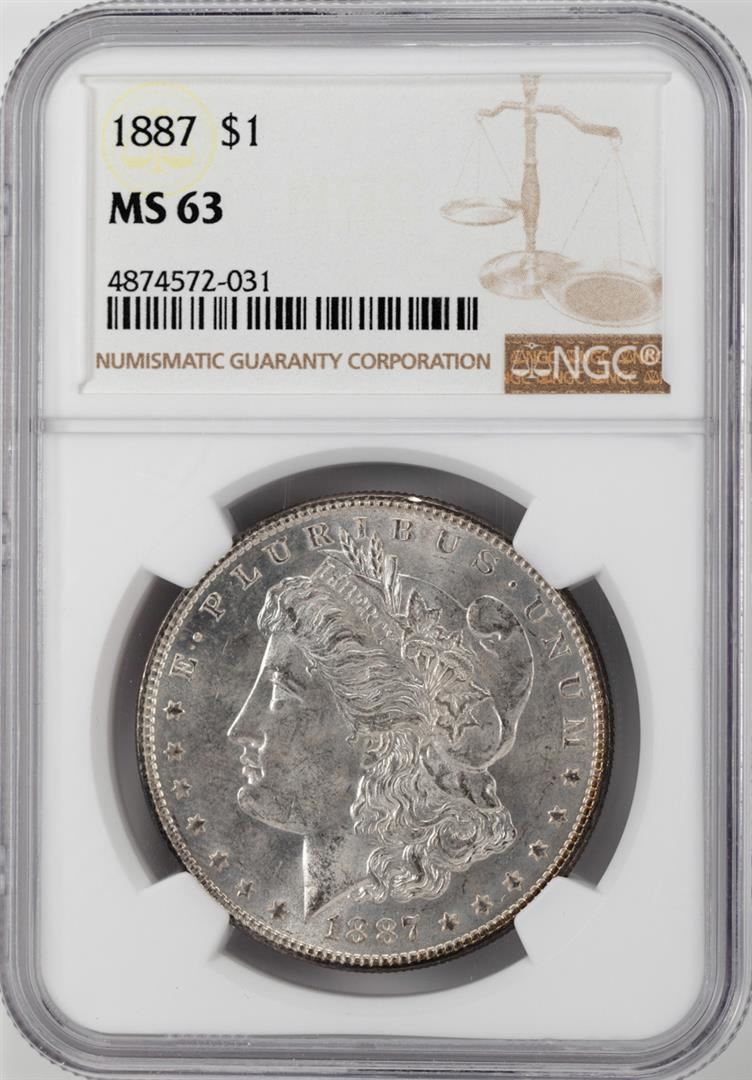 One 1887 $1 Morgan Silver Dollar Coin NGC MS63. NGC Certified.
