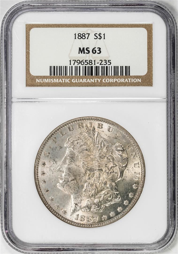One 1887 $1 Morgan Silver Dollar Coin NGC MS63. NGC Certified.