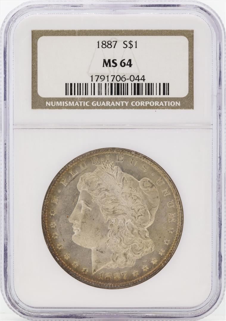 One 1887 $1 Morgan Silver Dollar Coin NGC MS64. NGC Certified.