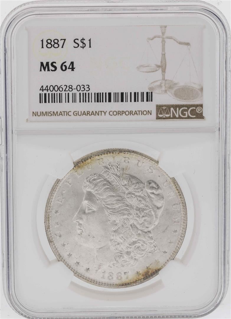 1887 $1 Morgan Silver Dollar Coin NGC MS64