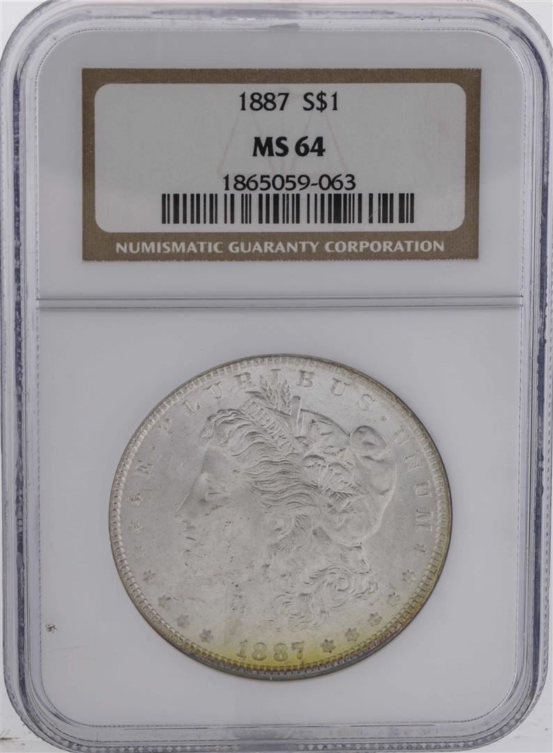 One 1887 $1 Morgan Silver Dollar Coin NGC MS64. NGC Certified.