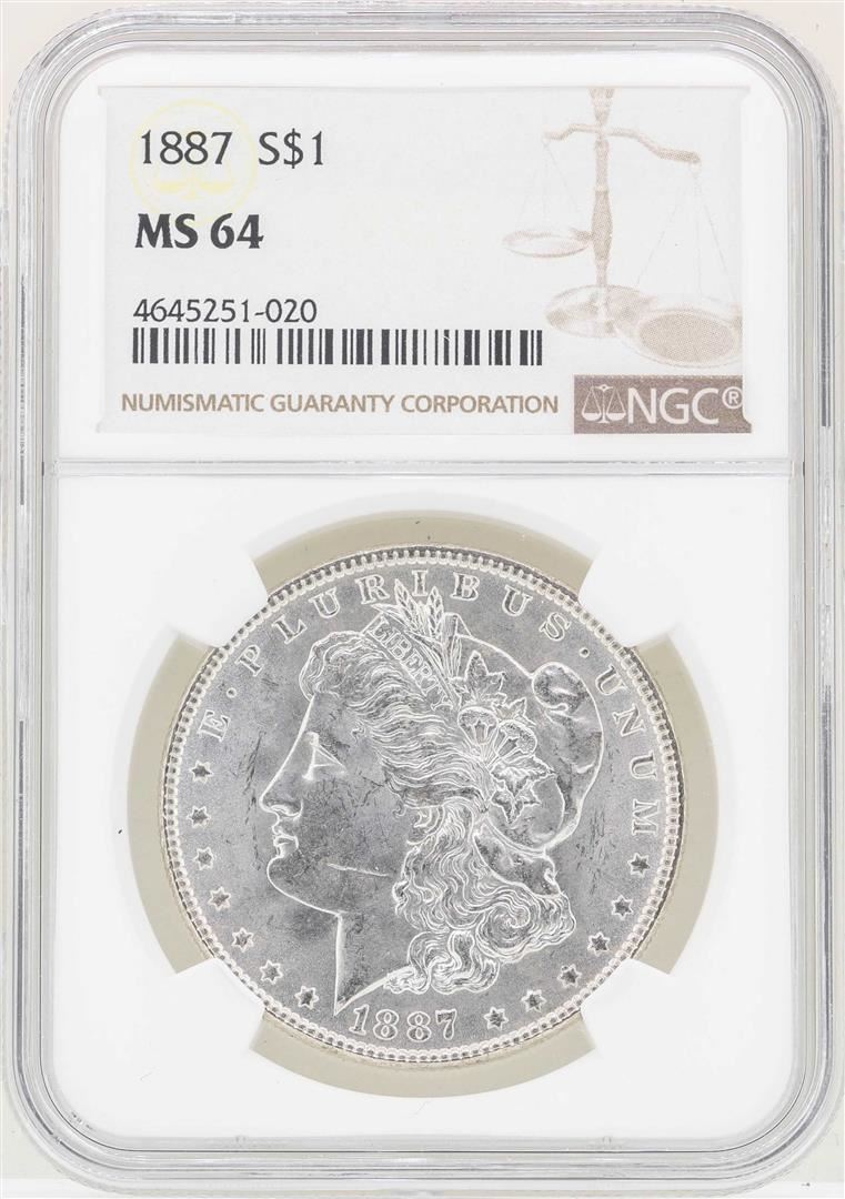 One 1887 $1 Morgan Silver Dollar Coin NGC MS64. NGC Certified.