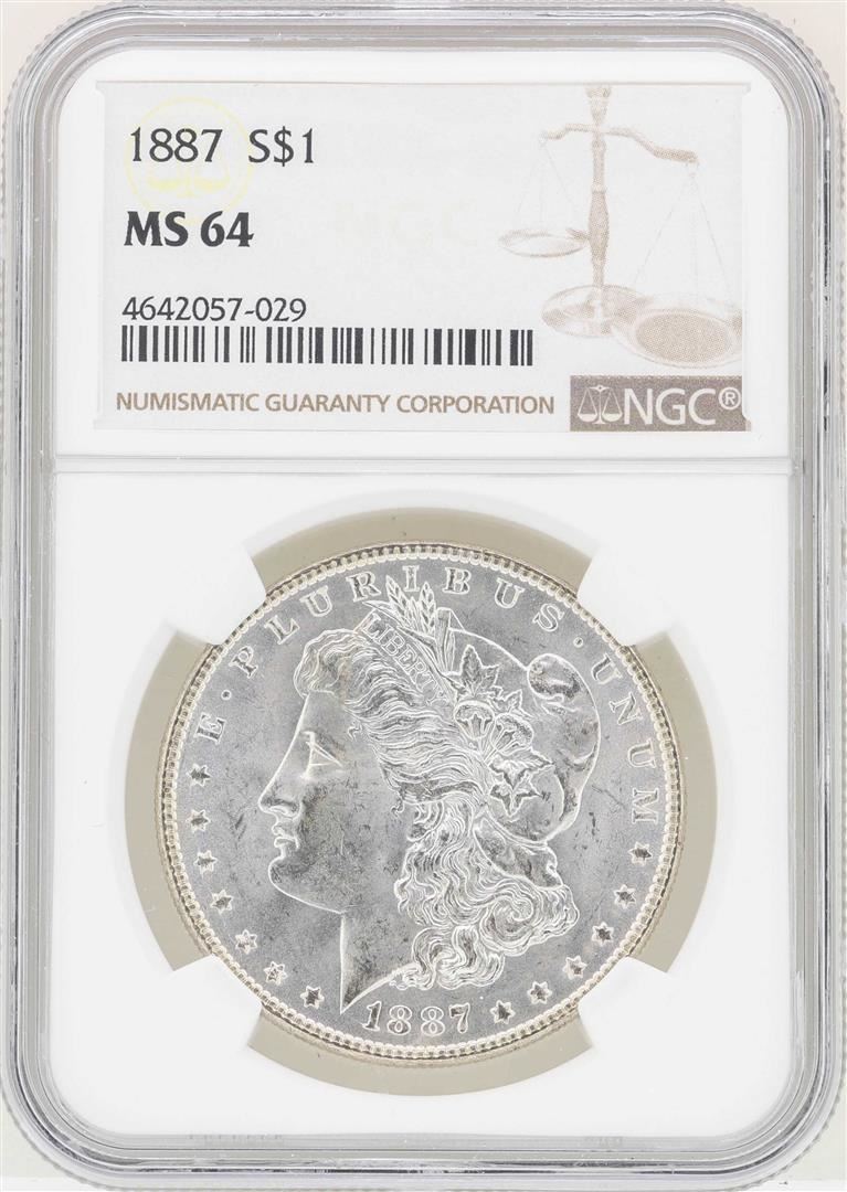 One 1887 $1 Morgan Silver Dollar Coin NGC MS64. NGC Certified.