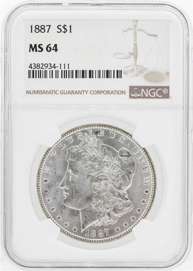 One 1887 $1 Morgan Silver Dollar Coin NGC MS64. NGC Certified.