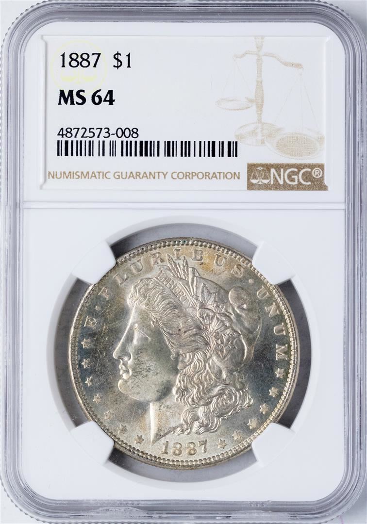 One 1887 $1 Morgan Silver Dollar Coin NGC MS64. NGC Certified.