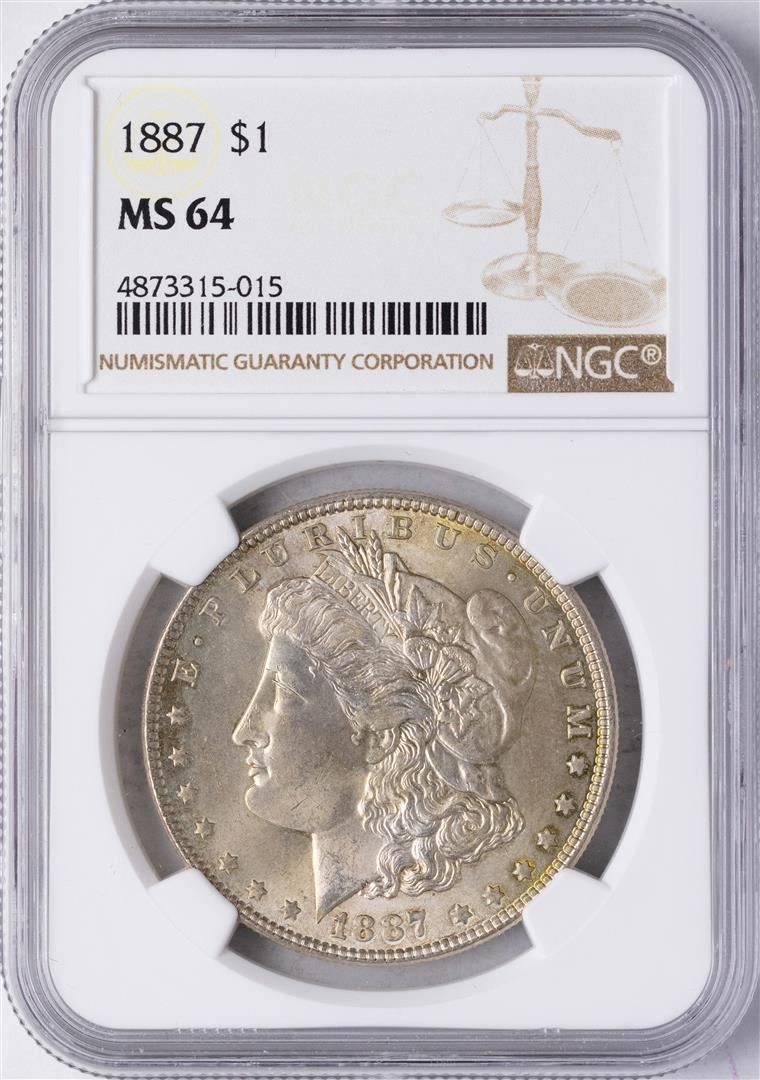 One 1887 $1 Morgan Silver Dollar Coin NGC MS64. NGC Certified.