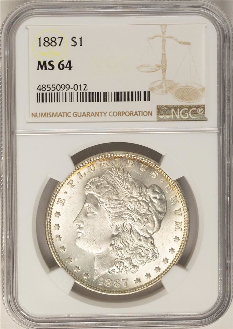 One 1887 $1 Morgan Silver Dollar Coin NGC MS64. NGC Certified.