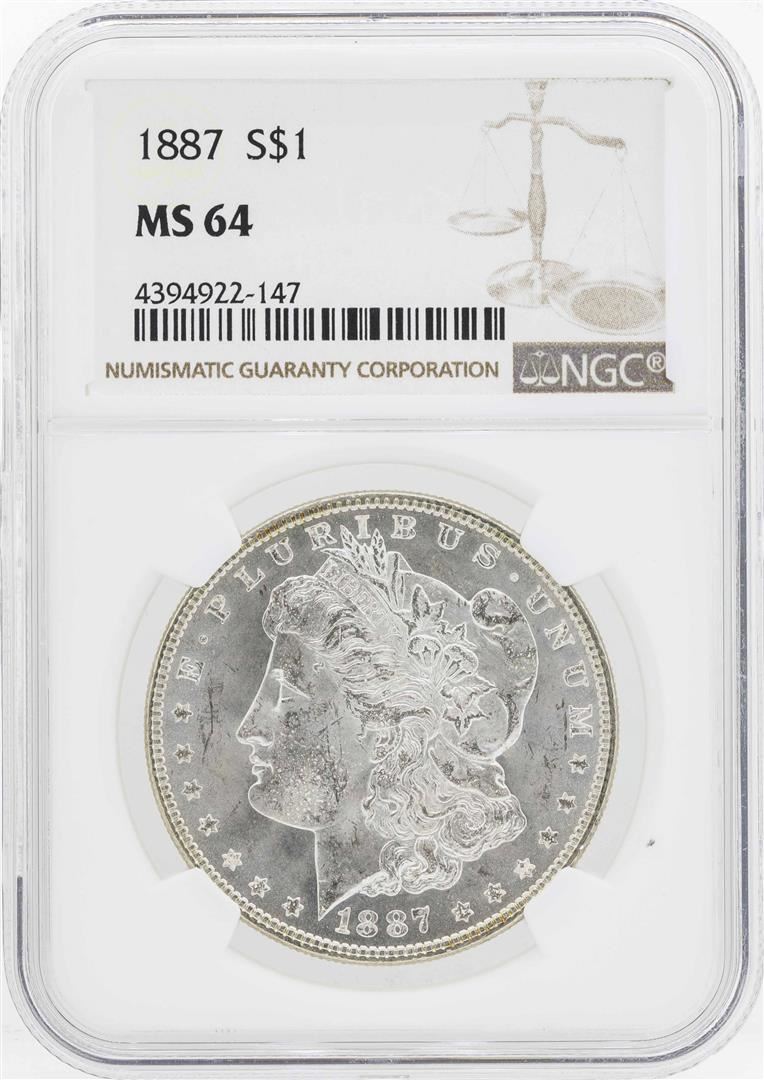 One 1887 $1 Morgan Silver Dollar Coin NGC MS64. NGC Certified.