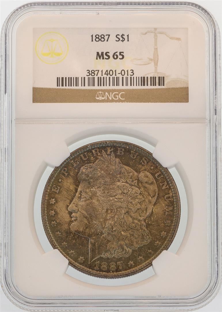 One 1887 $1 Morgan Silver Dollar Coin NGC MS65 Nice Toning. NGC Certified.