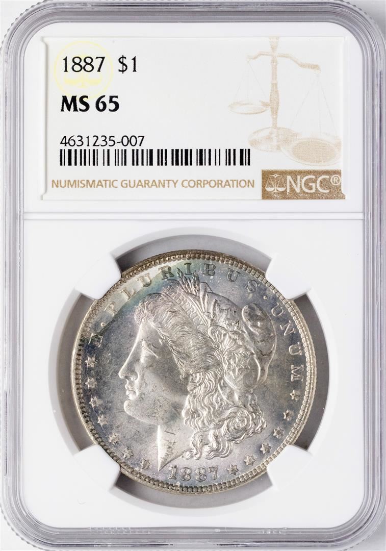 One 1887 $1 Morgan Silver Dollar Coin NGC MS65 Nice Toning. NGC Certified.