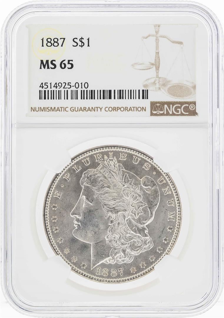 One 1887 $1 Morgan Silver Dollar Coin NGC MS65. NGC Certified.