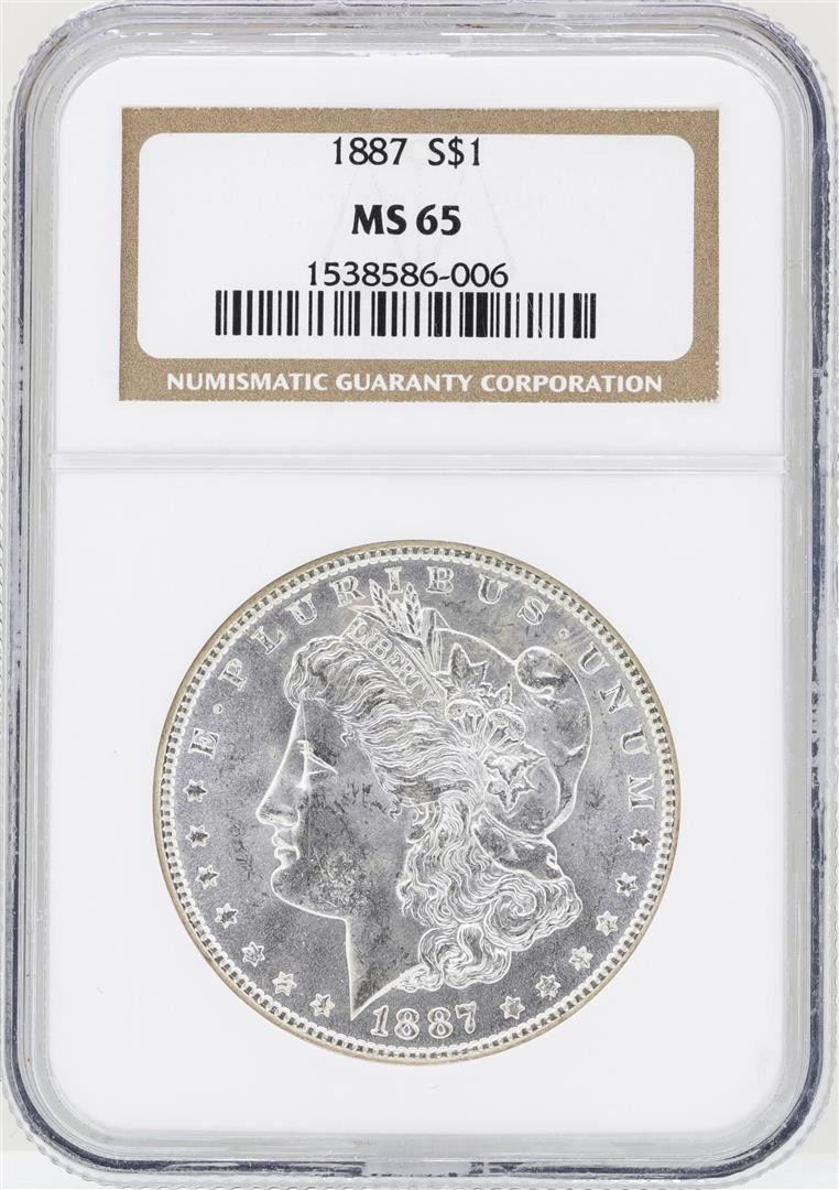 One 1887 $1 Morgan Silver Dollar Coin NGC MS65. NGC Certified.