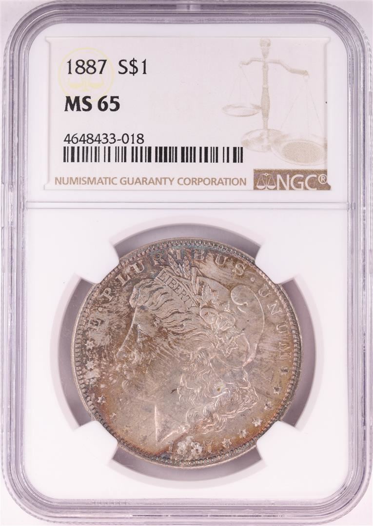 One 1887 $1 Morgan Silver Dollar Coin NGC MS65. NGC Certified.