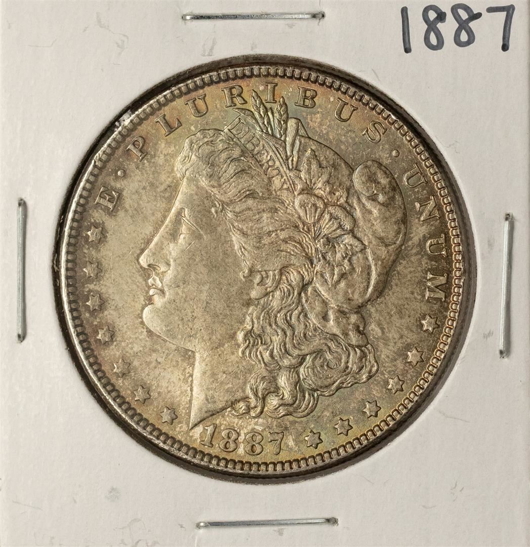 One 1887 $1 Morgan Silver Dollar Coin Nice Toning.