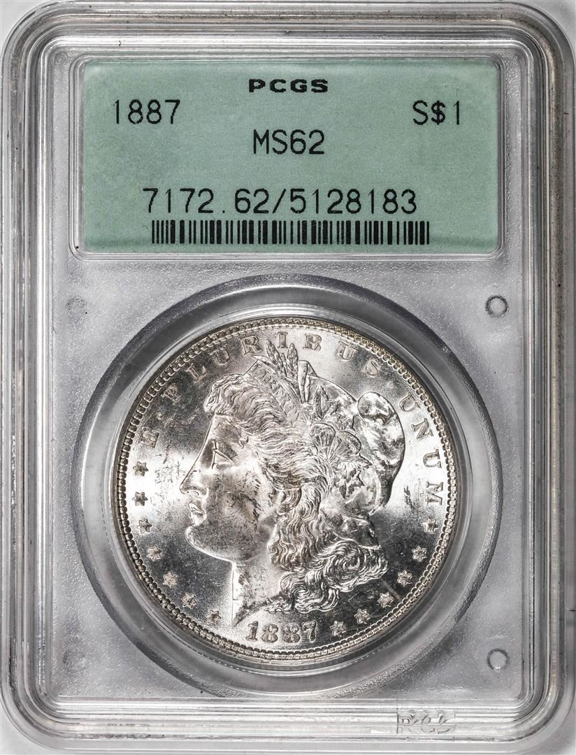 1887 $1 Morgan Silver Dollar Coin PCGS MS62 Old Green Holder