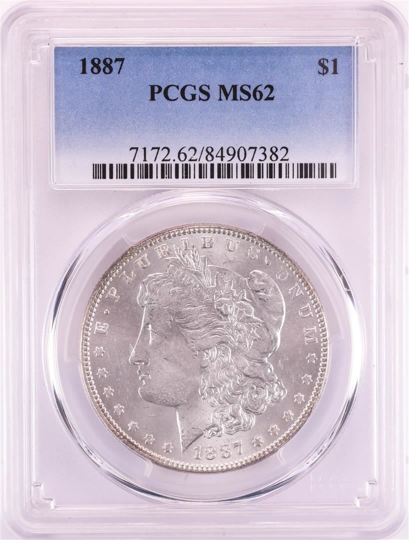 One 1887 $1 Morgan Silver Dollar Coin PCGS MS62. PCGS Graded.
